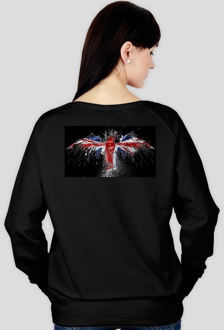 Modelka ma na sobie bluzę w rozmiarze S. Maksymalne wymiary nadruku to 30cm (szerokość)