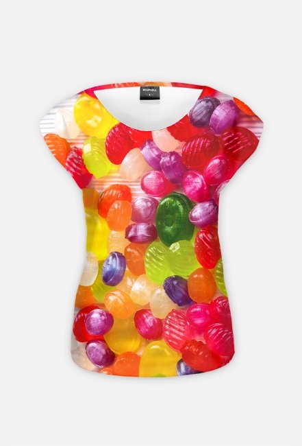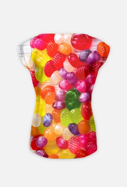 Kolorowa koszulka w cukierki - landrynki, z nadrukiem po obu stronach. :)
