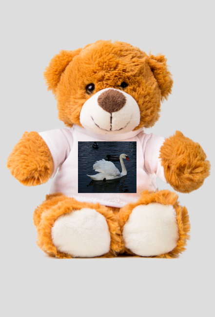 Miś ze zdjęciem ślicznego łabędzia na koszulce.