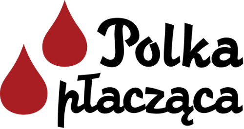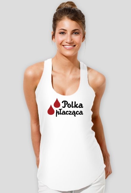 koszulka z czarnym napisem "Polka płacząca" z dwiema czerwonymi łzami/kroplami