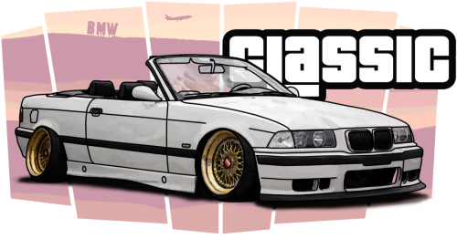 Digital art naszego e3przyjaciela wykonana w rozdzielczości 3k i 300ppi. Białe bmw e36 kabriolet m-pak.