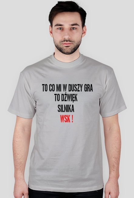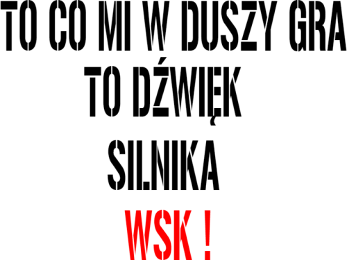 Koszulka z napisem "to co mi w duszy gra to dźwięk silnika WSK!"Zapraszam