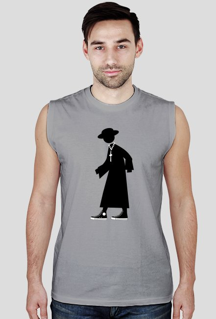 Koszulka bez rękawów męska z nadrukiem księdza.