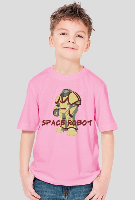 Koszulka chłopięca biała z nadrukiem  kosmicznego robota z napisem space robot.