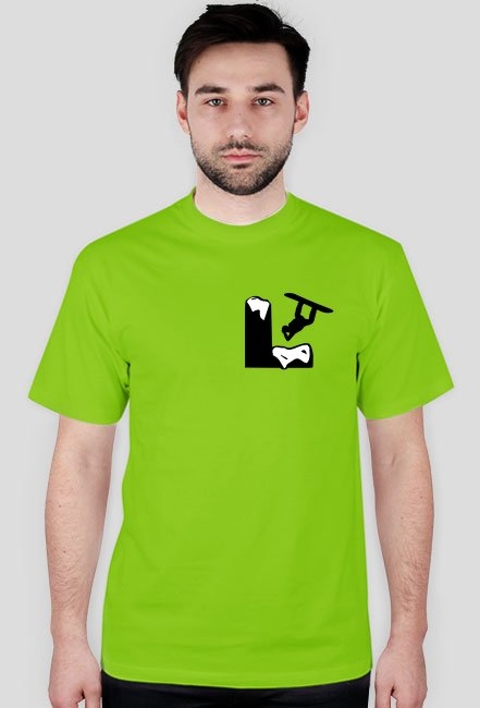 Model ma na sobie koszulkę w rozmiarze M. Maksymalne wymiary nadruku to 30cm (szerokość)