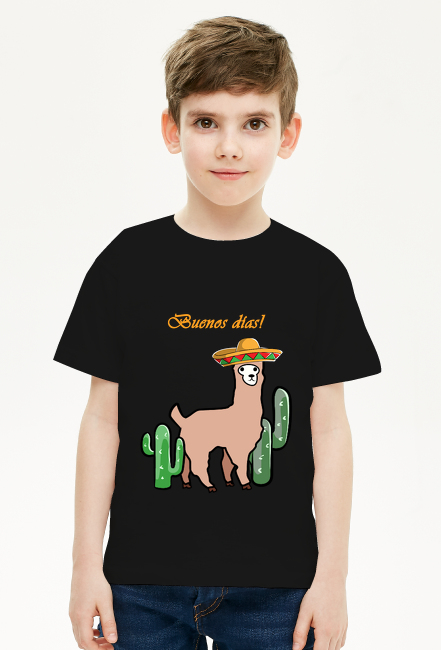 Słodka lama z sombrero wśród kaktusów. SKU: koszulka-chlopiec-new_eabg2nqn_4036046