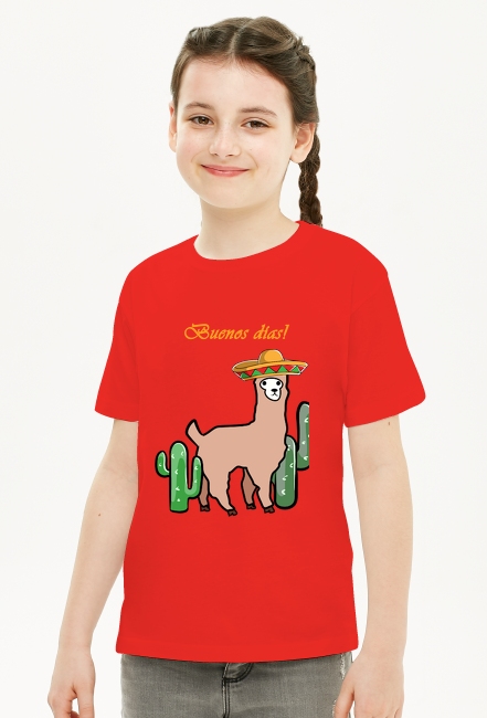 Słodka lama z sombrero wśród kaktusów. SKU: koszulka-dziewczynka-new_2hgi8eh4_4036052