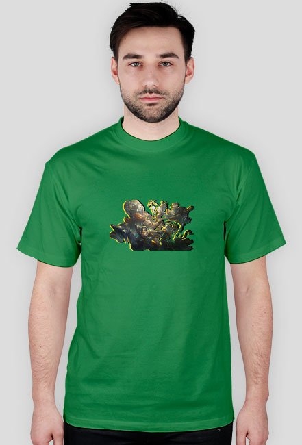 Model ma na sobie koszulkę w rozmiarze M. Maksymalne wymiary nadruku to 30cm (szerokość)