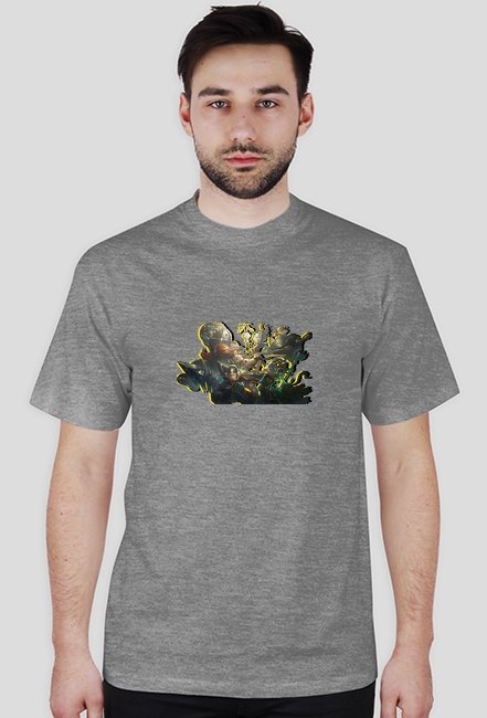 Model ma na sobie koszulkę w rozmiarze M. Maksymalne wymiary nadruku to 30cm (szerokość)