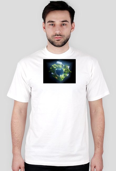 Model ma na sobie koszulkę w rozmiarze M. Maksymalne wymiary nadruku to 30cm (szerokość)