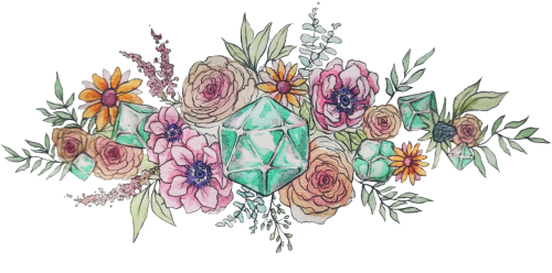 "Bouquet of Dice RPG" to kryształowa kostka do gry (k20) w otoczeniu pięknych kolorowych kwiatów i liści a także innych kości (k6, k10, k100, k8, k12) tworząc cudowny bukiet. Elementy przyrody odnoszą się do nazwy całej kolekcji i przesłania jakie ze sobą niesie - odgrywania postaci zgodnie z naszym naturalnym ja i czerpaniu satysfakcji ze spędzanego w ten sposób wolnego czasu.