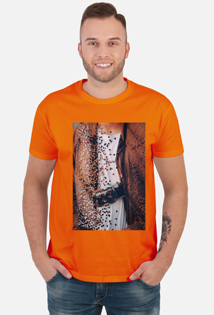 Klasyczna męska koszulka bawełniana z nadrukiem w technologi DTG.