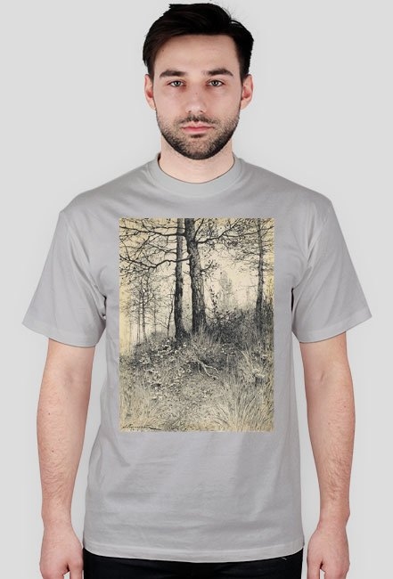Model ma na sobie koszulkę w rozmiarze M. Maksymalne wymiary nadruku to 30cm (szerokość)