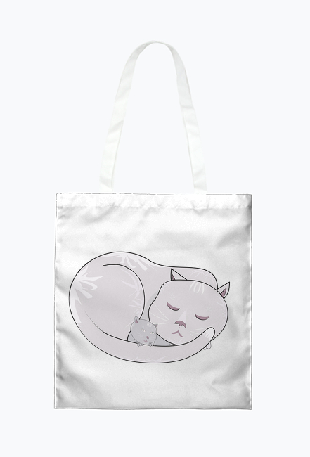 Śpiący kotek, tulący małego kotka to obrazek, który rozgrzewa serce każdego miłośnika kotów. Może to być piękny prezent dla każdego, kto uwielbia zwierzęta, kociaki i docenia ich piękno i przyjaźń. donamiart