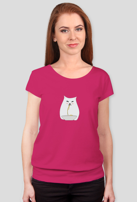 Koszulka Damska ze Ściągaczem – kot jedzący spaghetti SKU: Koszulka-damska-lu-na-ze-ci-gaczem_qz6m17nv_4663031