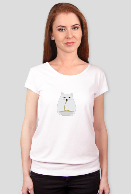 Koszulka Damska ze Ściągaczem – kot jedzący spaghetti SKU: Koszulka-damska-lu-na-ze-ci-gaczem_qz6m17nv_4663031