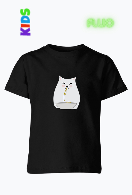 Koszulka Dziecięca Fluorestencyjna – Kot jedzący spaghetti SKU: koszulka-dzieci-ca-new-FLUO_lcr9efgo_4669896