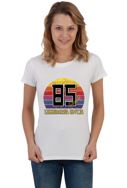 85 Legendarna Edycja - Koszulka damska na osiemdziesiąte piąte urodziny SKU: koszulka-damska-K02_sqydufv3_4470867
