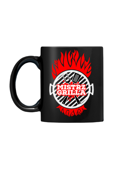 Czarny kubek z nadrukiem "Mistrz Grilla". Lubisz grillować, to Twoje hobby? W takim razie ten kubek jest dla Ciebie. Możesz go też dać komuś na prezent. Idealny kubek na lato i wakacje, na czas grillowania. Grill to dzisiaj moda i trendy. Miło będzie się z niego napić podczas grillowania kiełbasek.