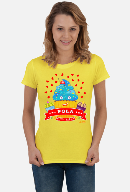 Damska koszulka z krótkim rękawem i nadrukiem - Pola Fajna Babka. Tshirt z imieniem Pola i sympatyczną babeczką. Idealny pomysł na imieniny lub urodziny dla kobiety o imieniu Pola, Apolonia, Apollonia, Polcia, Polusia, Poleczka, Polka, Polunia, Polek, Polcik, Polnik, Poluśka, Poluńka.