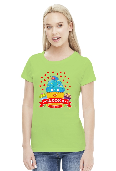 Damska koszulka z krótkim rękawem i nadrukiem - Słodka Babeczka. Tshirt dla każdej kobiety, dziewczyny, fajnej babki. Idealny pomysł na prezent. Koszulka dostępna w kilku kolorach.