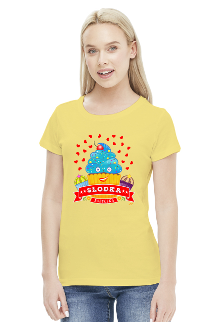 Damska koszulka z krótkim rękawem i nadrukiem - Słodka Babeczka. Tshirt dla każdej kobiety, dziewczyny, fajnej babki. Idealny pomysł na prezent. Koszulka dostępna w kilku kolorach.