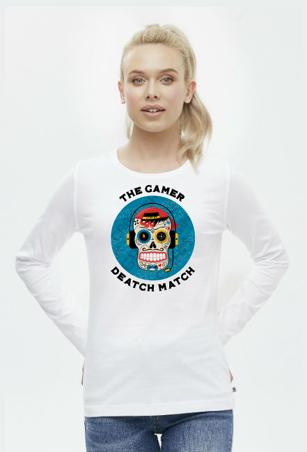 Damska koszulka gamingowa z długim rękawem i nadrukiem - The Gamer Deatch Match. Tshirt dla graczy, fanów / fanek gier komputerowych i na konsole.