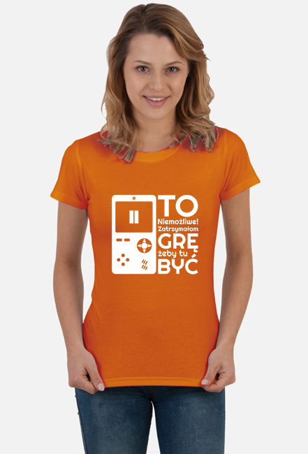 Damska koszulka gamingowa z krótkim rękawem i nadrukiem - TO Niemożliwe! Zatrzymałam GRĘ żeby tu BYĆ . Tshirt dla graczy, fanów gier komputerowych i na konsole.