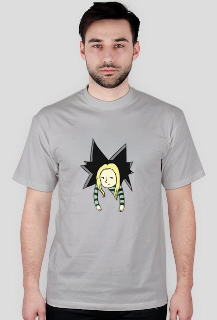 Model ma na sobie koszulkę w rozmiarze M. Maksymalne wymiary nadruku to 30cm (szerokość)