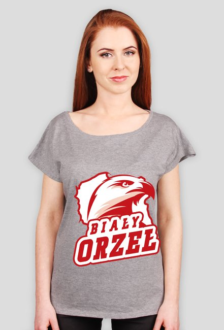 Damska koszulka o luźnym kroju „oversize” z dekoltem w łódeczkę. Zamówienia są wykonywane na koszulkach bardzo dobrej jakości, materiale grubym i trwałym.