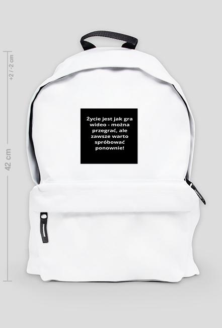 Plecak składa się z komory głównej oraz mniejszej komory z naszytą kieszonką. Posiada przednią kieszeń zapinaną na zamek błyskawiczny, wyściełany tył oraz wygodny uchwyt do noszenia. Idealny do szkoły, na wycieczkę i trening.- wymiary: 42 x 31 x 21 cm,