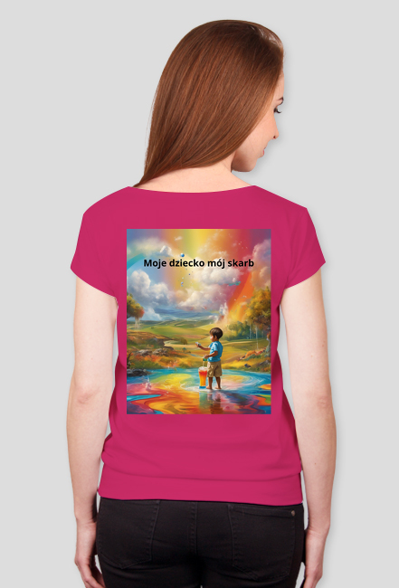 Koszulka z nadrukiem dziecka w tęczy z napisem "Moje dziecko mój skarb."