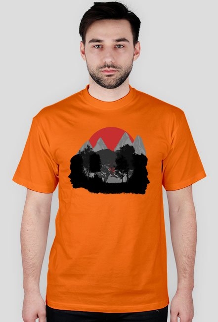 Model ma na sobie koszulkę w rozmiarze M. Maksymalne wymiary nadruku to 30cm (szerokość)