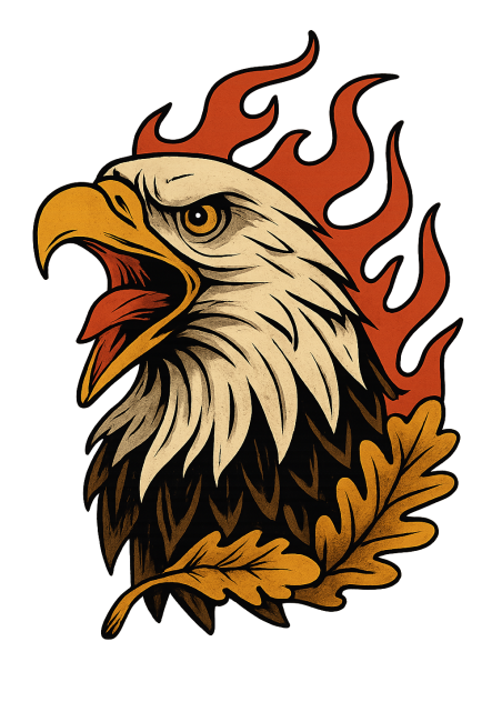 Ten klasyczny wzór w stylu vintage tatuażowym to symbol wolności, siły i czujności.