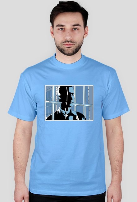 Model ma na sobie koszulkę w rozmiarze M. Maksymalne wymiary nadruku to 30cm (szerokość)