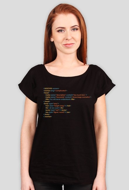 Damska koszulka o luźnym kroju „oversize” z dekoltem w łódeczkę. Zamówienia są wykonywane na koszulkach bardzo dobrej jakości, materiale grubym i trwałym.