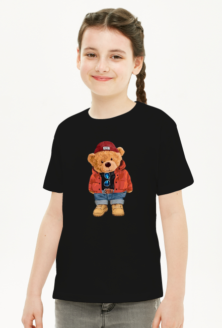 Koszulka dla dziewczynki z modnym misiem jest taki słodki i wystylizowany.
