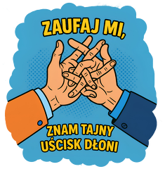 Trochę pop-art, trochę konspiracja, a trochę czysty żart. Bo jeśli ktoś zna taki uścisk dłoni, to wiesz, że możesz mu zaufać… albo przynajmniej dać się zaprosić na kawę.