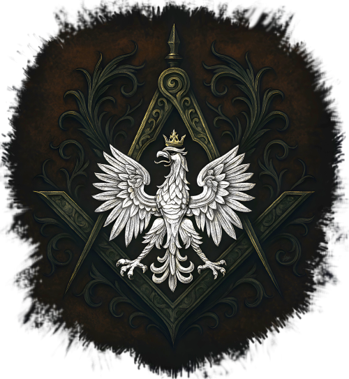 Gdy wolność spotyka wiedzę, powstaje symbol, który nie potrzebuje słów. Biały Orzeł z koroną – dumny i silny – spoczywa na tle masońskiego kompasu i węgielnicy, jakby mówił: „Prawda, godność i rozum to nasza tradycja”.