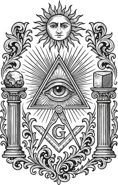 Nie trzeba mówić nic — wszystko już tu jest. Oko Opatrzności, kolumny Jachin i Boaz, kamień nieociosany, kamień doskonały... i to wrażenie, że ktoś właśnie zadaje ci pytanie, na które nie ma łatwej odpowiedzi.