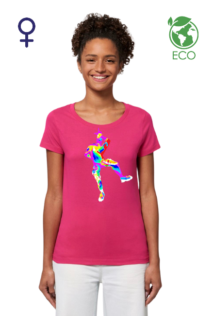 Damska koszulka z linii Eco Aware. Posiada wszywane rękawy, ściągacz na kołnierzyku oraz taśmę wzmacniającą na karku. Rękawy i dół z wąskim podwójnym ściegiem. Materiał: single jersey: 100% organiczna bawełna czesana ring spun. Gramatura 150 g/m². Posiada certyfikaty: GOTS (Global Organic Textile Standard), GRS, OCS, OEKO-TEX Standard 100, Fair Wear.