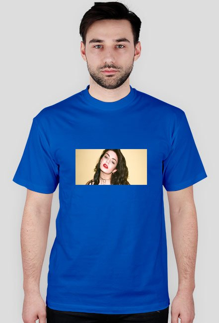 Model ma na sobie koszulkę w rozmiarze M. Maksymalne wymiary nadruku to 30cm (szerokość)