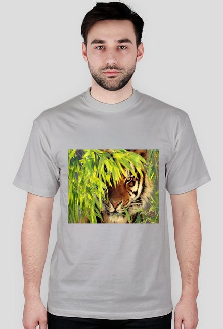 Model ma na sobie koszulkę w rozmiarze M. Maksymalne wymiary nadruku to 30cm (szerokość)