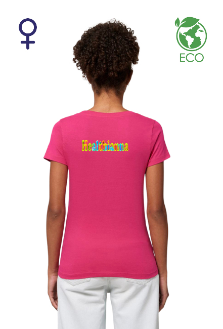 Damska koszulka z linii Eco Aware. Posiada wszywane rękawy, ściągacz na kołnierzyku oraz taśmę wzmacniającą na karku. Rękawy i dół z wąskim podwójnym ściegiem. Materiał: single jersey: 100% organiczna bawełna czesana ring spun. Gramatura 150 g/m². Posiada certyfikaty: GOTS (Global Organic Textile Standard), GRS, OCS, OEKO-TEX Standard 100, Fair Wear.