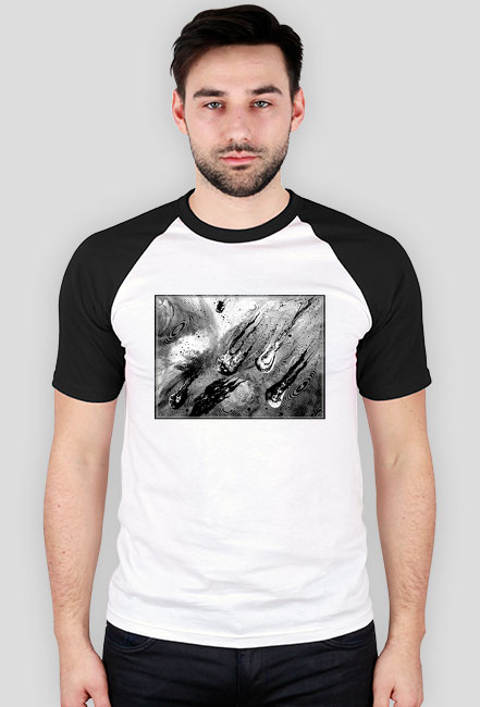 "Deszcz meteorów" - czarnobiała graika na podstawie obrazu autorstwa HelenGie.