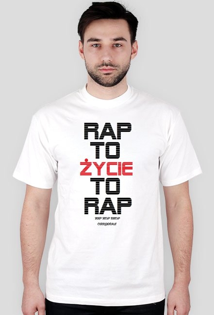 Męska biała koszulka "RAP TO ŻYCIE TO RAP".