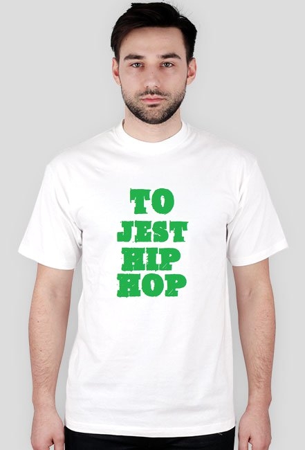 Koszulka "TO JEST HIP HOP" biała z zielonym nadrukiem, męska.