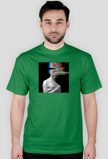 Model ma na sobie koszulkę w rozmiarze M. Maksymalne wymiary nadruku to 30cm (szerokość)