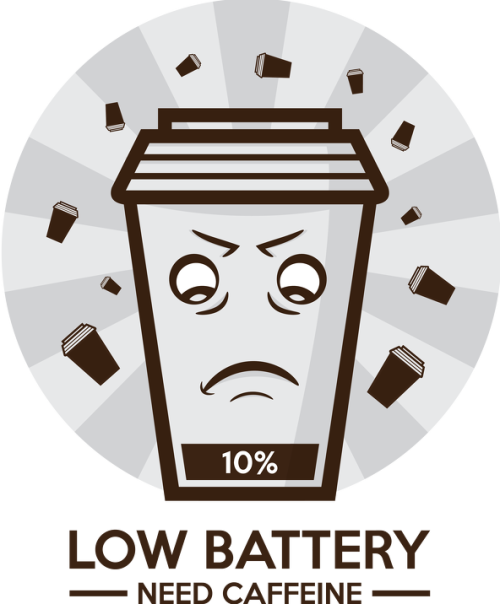 Lubisz motywy z humorem? Mamy dla Ciebie wspaniały wzór Low Battery Pokaż innym że bez kawy dużo nie pociągniesz.