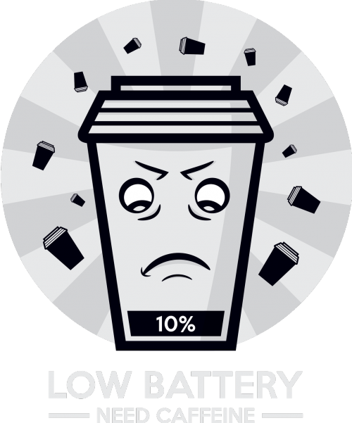 Lubisz motywy z humorem? Mamy dla Ciebie wspaniały wzór Low Battery Pokaż innym że bez kawy dużo nie pociągniesz.